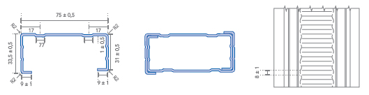 | 0,75 mm | 75 mm | Zincalume Aluzinc / |